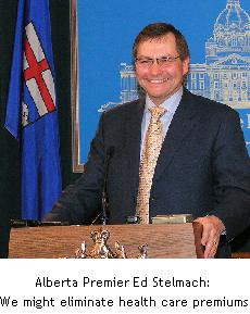 It's for the first time Alberta Premier Ed Stelmach is talking about the possibility of eliminating health care premiums as part of his party’s next election platform.