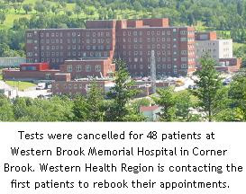 The Western Health regional authority cancelled tests for 48 patients through Western Brook Memorial Hospital in Corner Brook after the Chalk River reactor shut down in November.