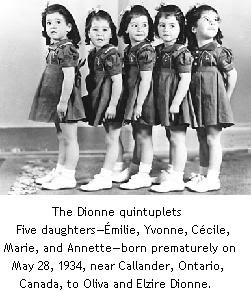 This year, on January 7th in Vancouver, Canada's first set of sextuplets were born, eclipsing the country's famed Dionne quintuplets, born May 28th, 1934.